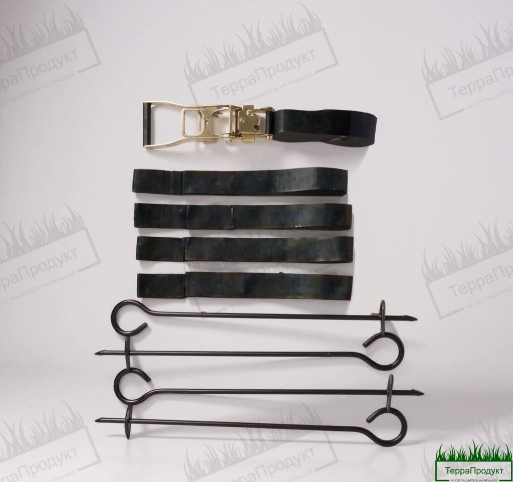 Профессиональный анкерный комплект для скрытого монтажа деревьев с диаметром кома 110-150 мм. Надежная фиксация без видимых элементов крепления. Подходит для саженцев и взрослых деревьев.